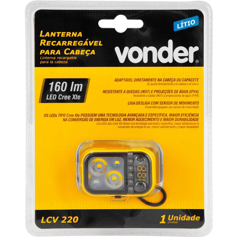 | Destaques Comercial | Lanterna de cabeça com sensor de movimento, cinta ajustável, bateria 3,7V recarregável via USB-C, display digital, LEDs Cree Xte, resistência IK07 e IPX4. |