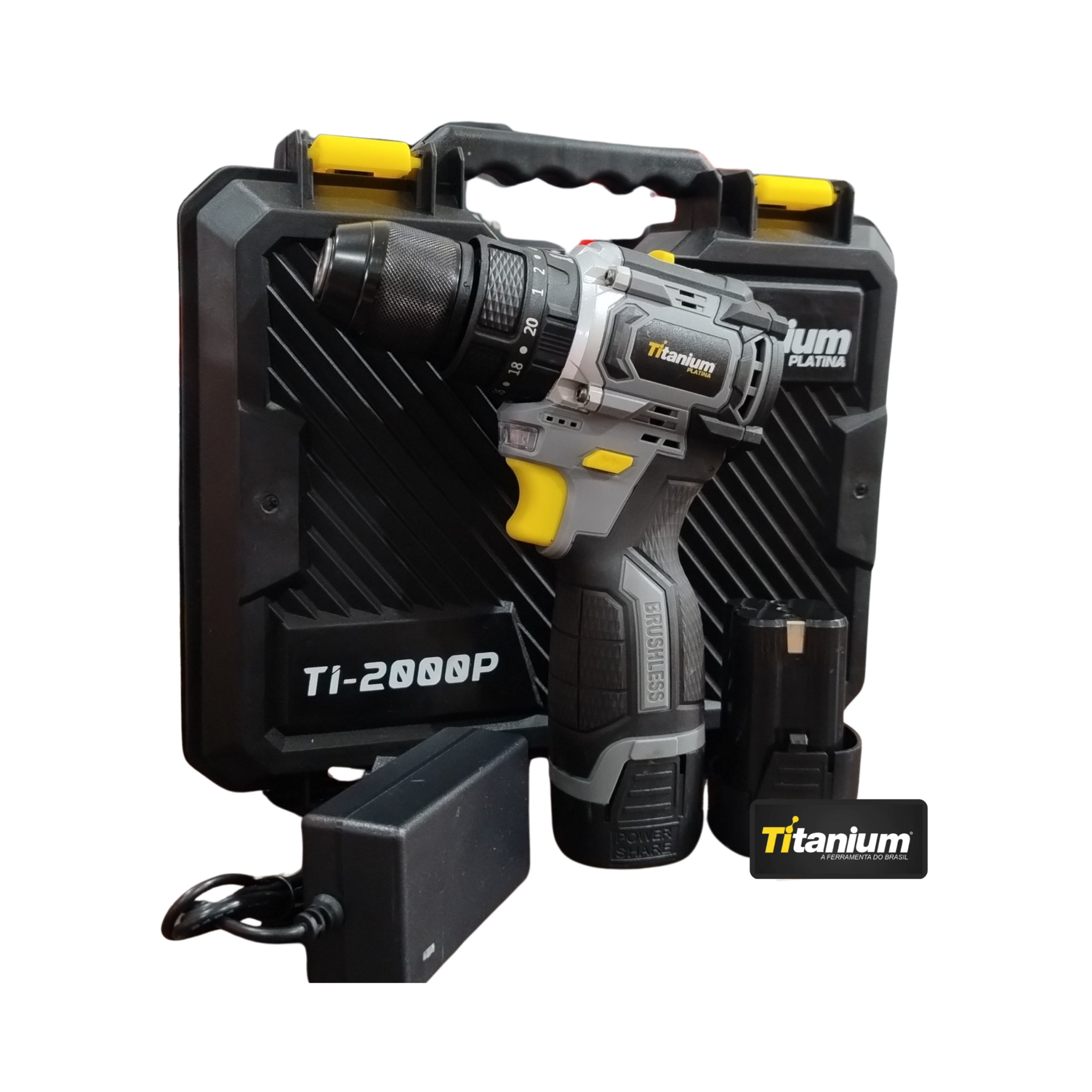 Parafusadeira/Furadeira a Bateria 16,8V TI-2000P Titanium Compacta, potente e pronta para o trabalho A Parafusadeira e Furadeira TI-2000P 16,8V Titanium é a ferramenta ideal para quem busca mobilidade, eficiência e praticidade no dia a dia. Com motor brushless, bateria de íons de lítio e função impacto, é perfeita para perfurações e parafusamentos em madeira, metal, plástico e alvenaria leve. Seu design ergonômico garante conforto durante o uso, enquanto o LED frontal integrado facilita o trabalho em ambientes pouco iluminados. Conta com mandril de aperto rápido 3/8″, torque máximo de 40 Nm e 20 níveis de regulagem + funções extras para perfuração e impacto. Oferece 2 velocidades mecânicas (0–450 / 0–2000 RPM), botão de reversão e indicador de carga da bateria. Leve, robusta e eficiente, acompanha maleta plástica, bateria, carregador bivolt e kit com pontas e brocas básicas. Especificações técnicas: Voltagem: 16,8V Tipo de bateria: Íon de lítio, recarregável – 2000 mAh Torque máximo: 40 Nm Ajuste de torque: 20 + 1 + 1 + 1 posições Mandril: 3/8″ (10 mm) com aperto rápido Motor: Brushless Velocidades: 2 mecânicas – 0–450 / 0–2000 RPM Funções: Parafusadeira, furadeira e furadeira com impacto Iluminação: LED frontal Tempo de carga: 3 a 5 horas Botão de reversão: Sim Peso da ferramenta: Aprox. 1,2 kg Peso com maleta: Aprox. 1,9 kg Dimensões da ferramenta: 22 x 20 x 7 cm (C x A x L) Conteúdo da embalagem: 1 Parafusadeira e Furadeira a Bateria 16,8V TI-2000P Titanium; 1 Maleta plástica para transporte; 1 Bateria recarregável; 1 Carregador bivolt automático; 1 Kit de acessórios com brocas e bits básicos. Mobilidade e potência em uma só ferramenta. A escolha ideal para suas tarefas!